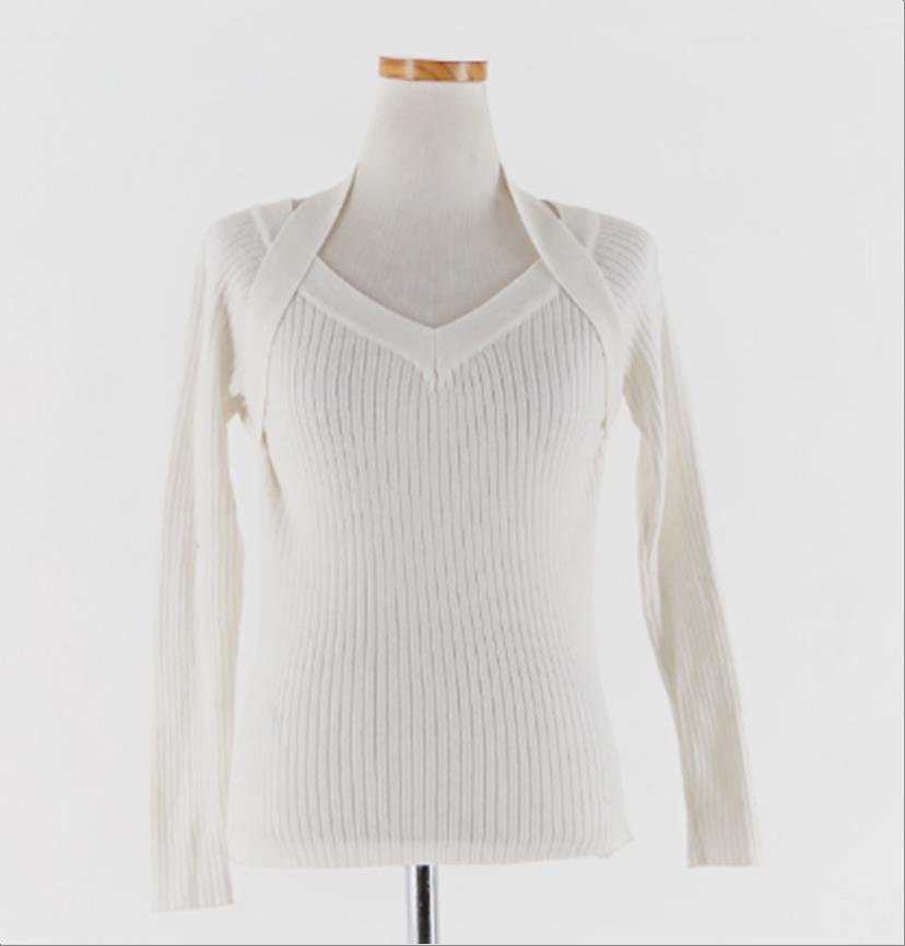 韩国官网款女装-上衣홀터골지니트