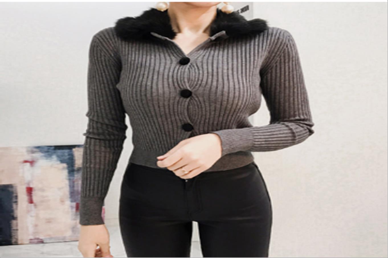 韩国官网款女装-上衣버튼골지