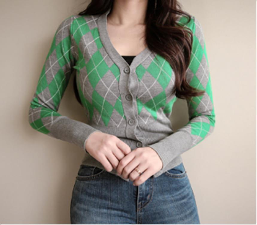 韩国官网款女装-上衣슬림아가일Y