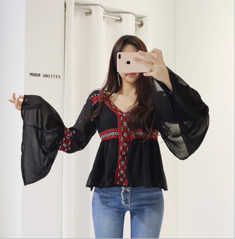 韩国官网款女装-上衣나팔반P