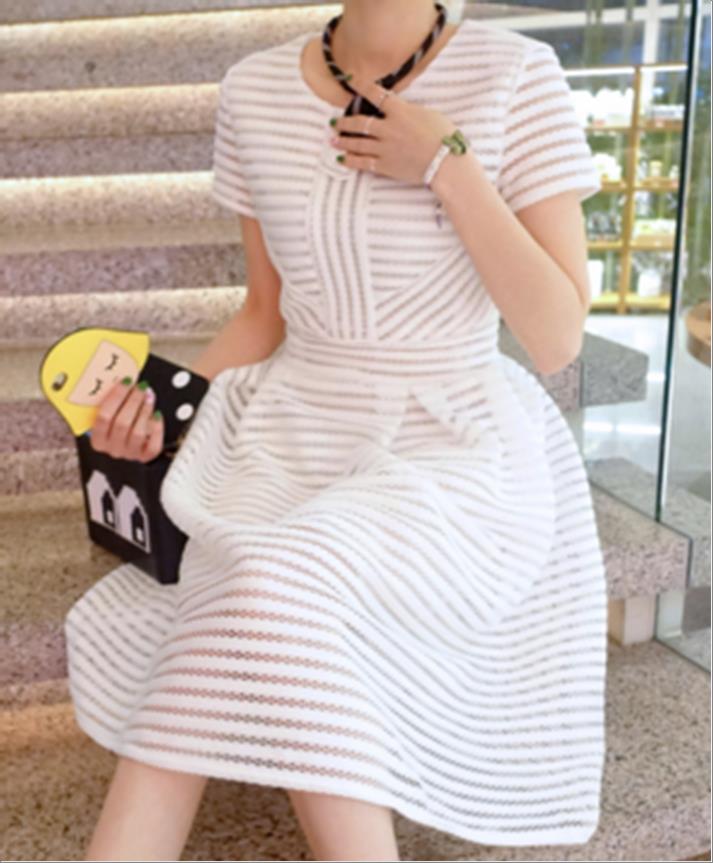 韩国官网款女装-裙子엠보줄원피스