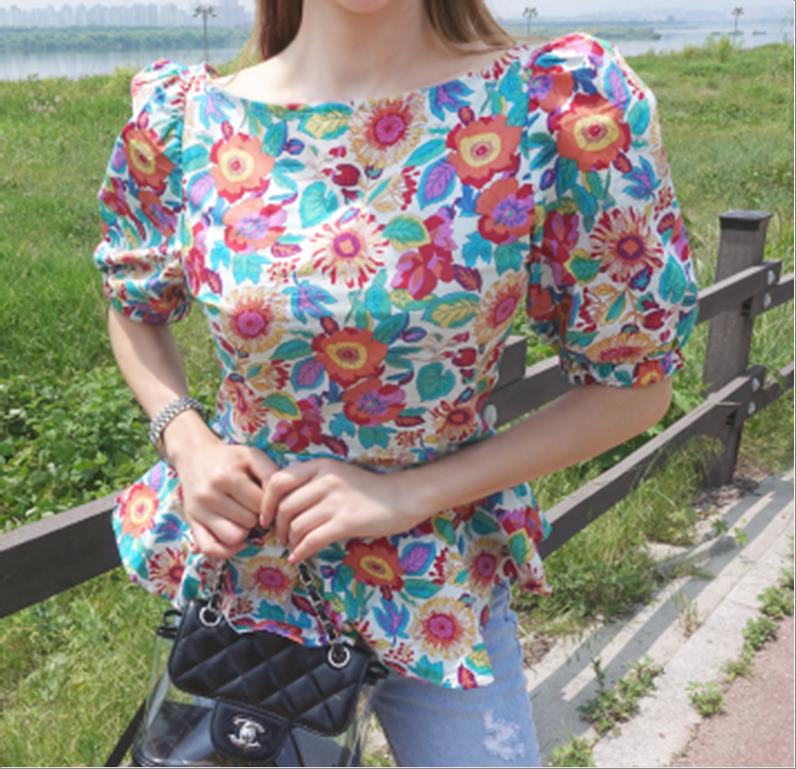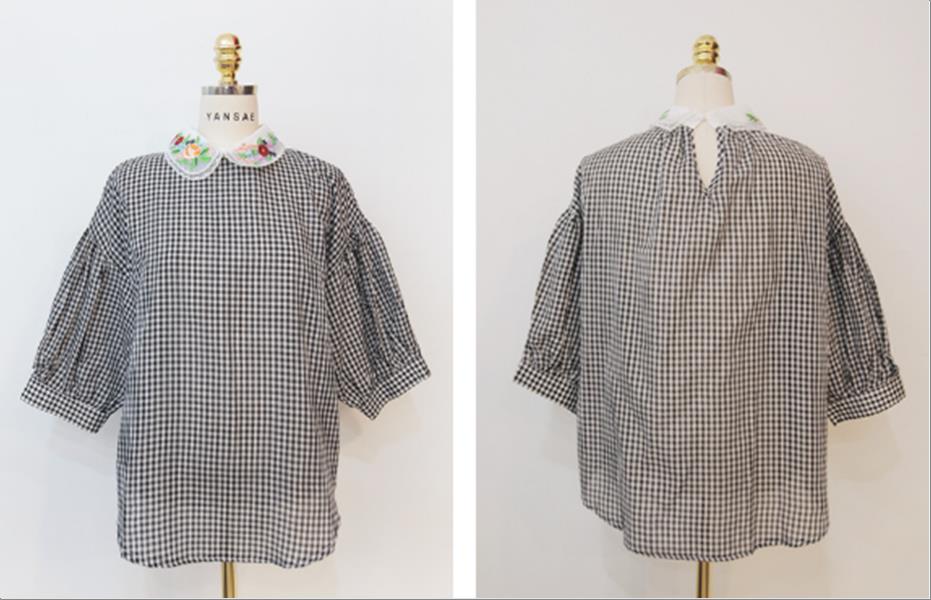 韩国官网款女装-上衣왕꽃패치블라
