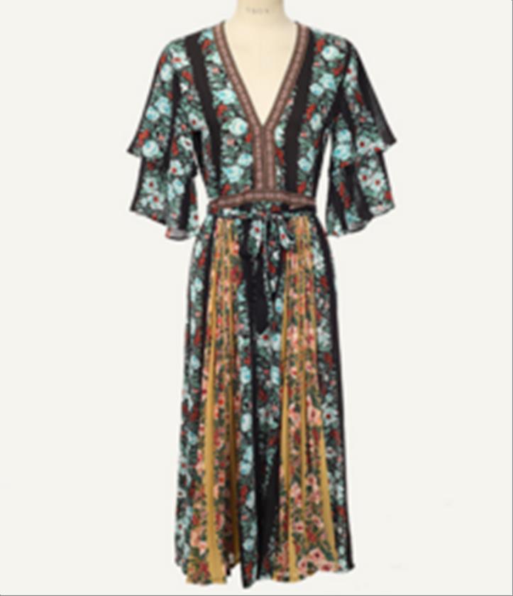 韩国官网款女装-裙子V장미주름원피스