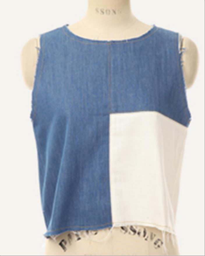 韩国官网款女装-上衣데님배색나시