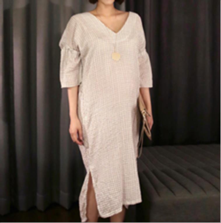 韩国官网款女装-裙子체크뒷셔링원피스