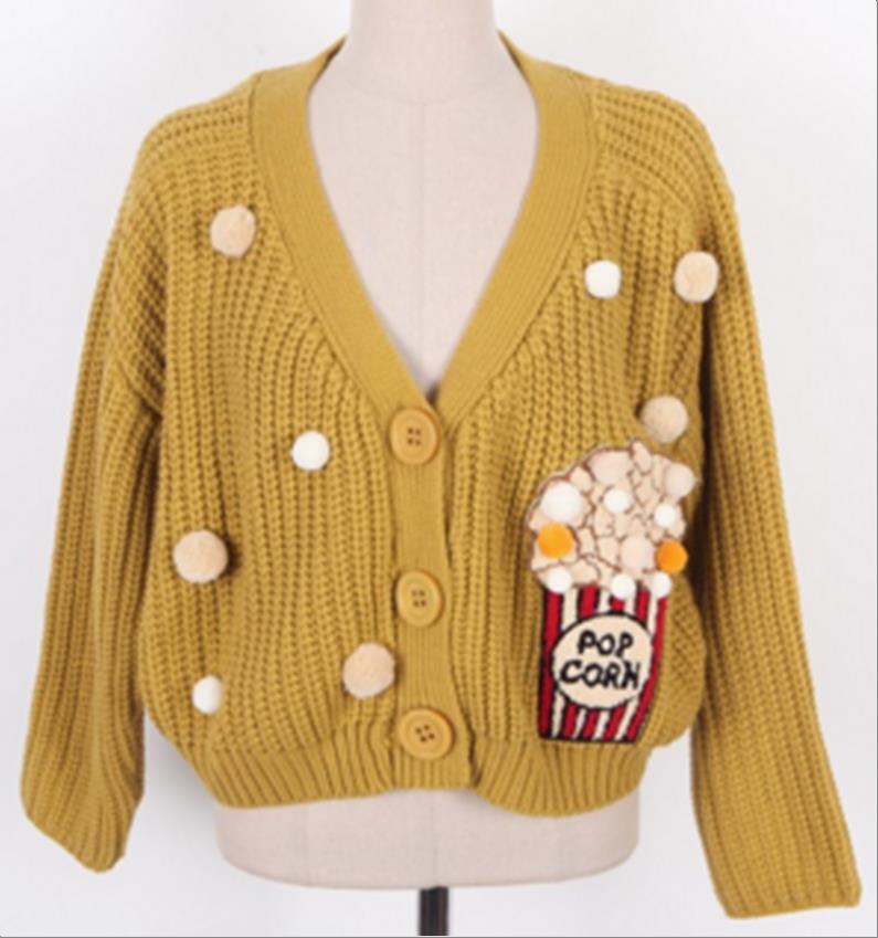 韩国官网款女装-上衣팝콘가디건