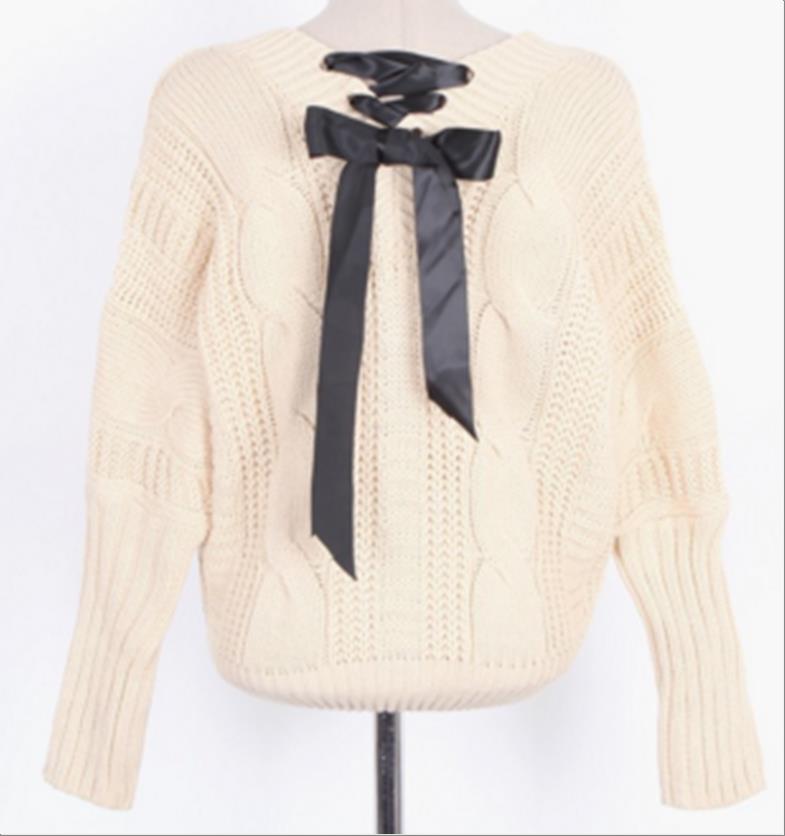 韩国官网款女装-上衣꽈배기리본니트