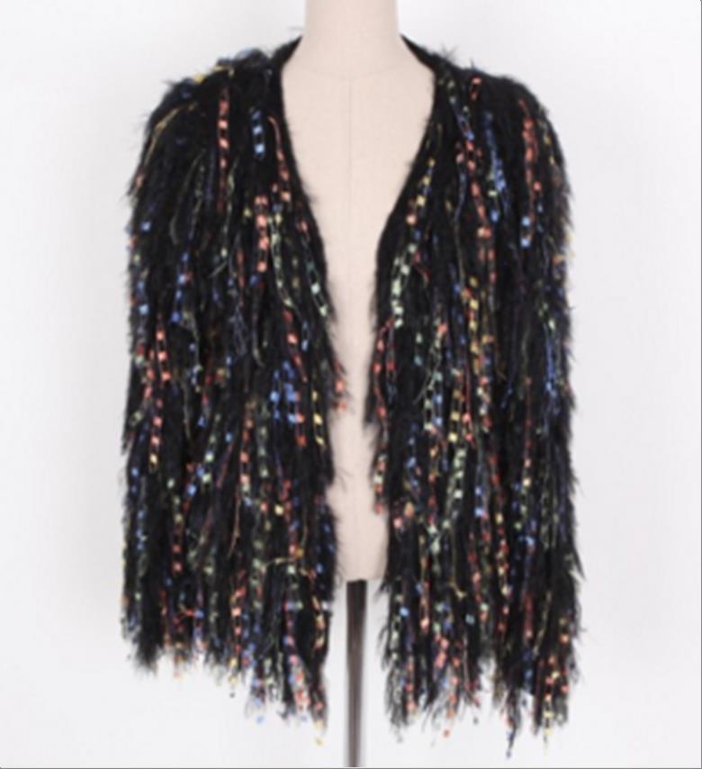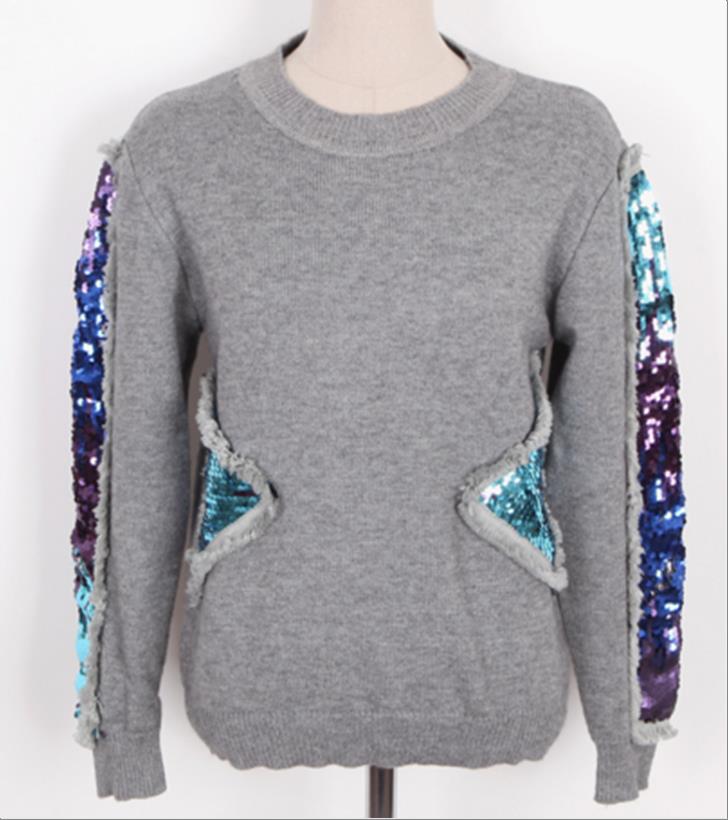 韩国官网款女装-上衣스팽글소매니트