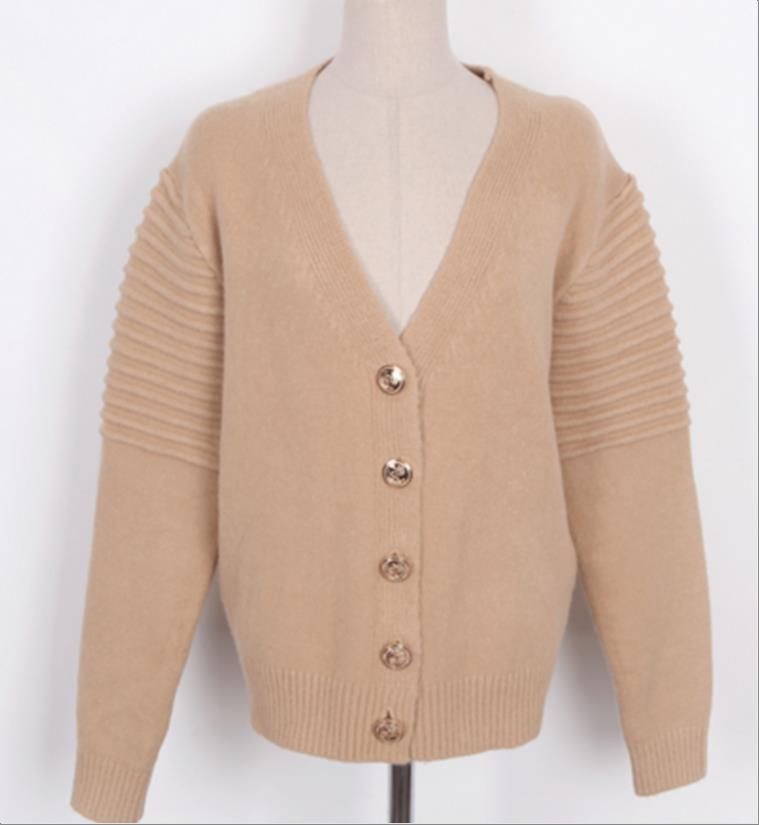 韩国官网款女装-上衣발망버튼가디건 (베)