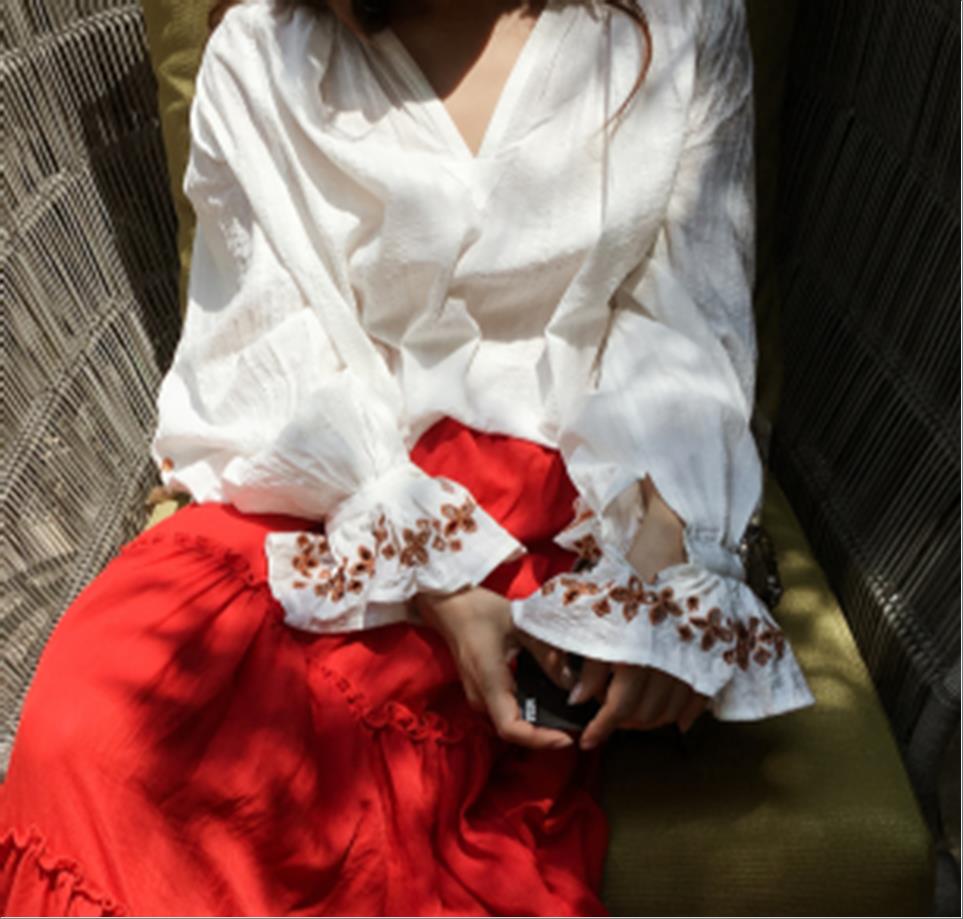 韩国官网款女装-上衣소매자수MTM