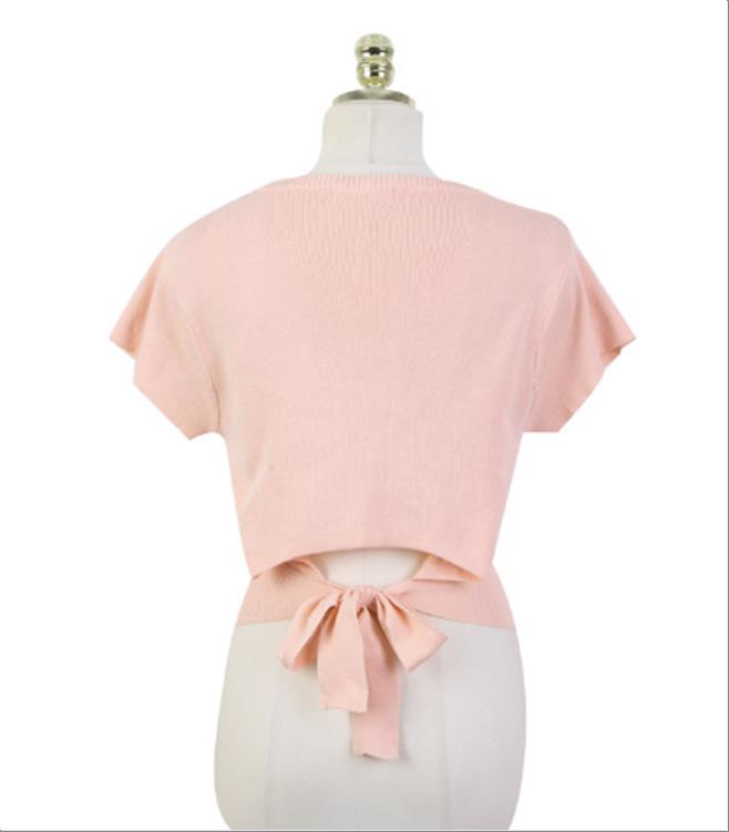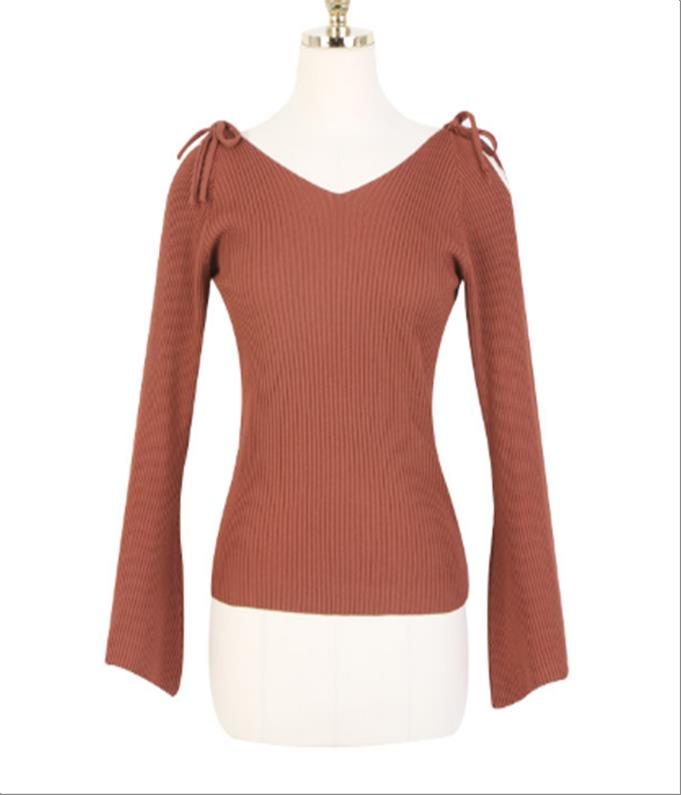 韩国官网款女装-上衣어깨리본나팔니트