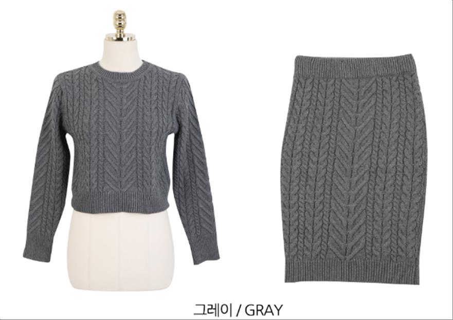 韩国官网款女装-上衣롯드골지SET