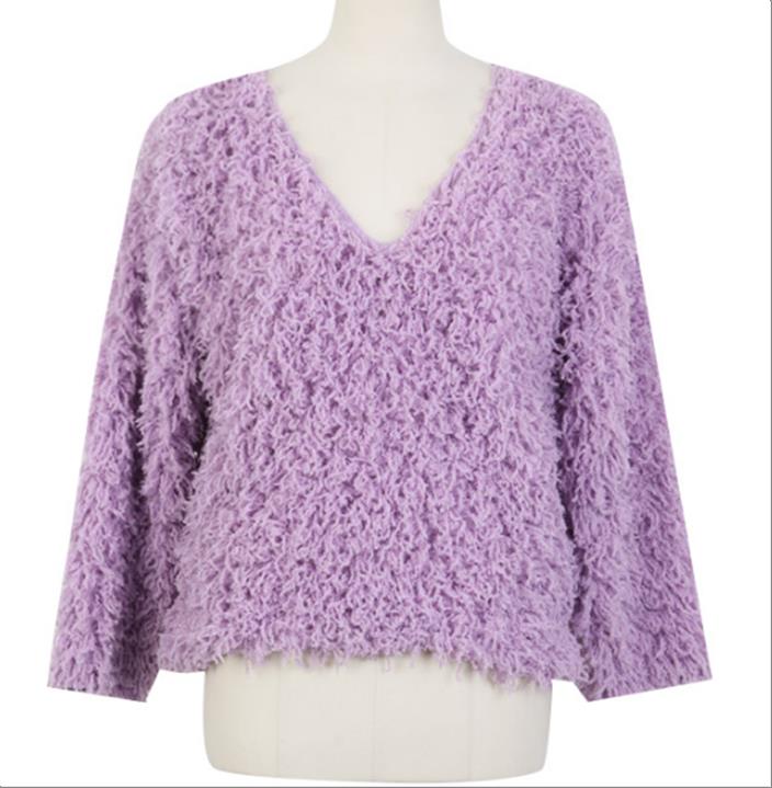 韩国官网款女装-上衣입술넥나팔니트