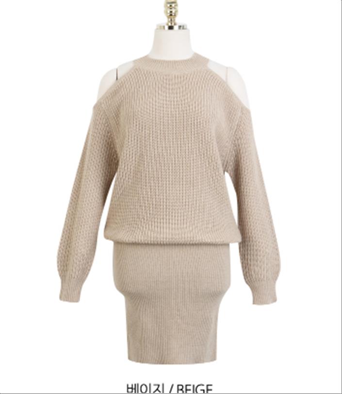 韩国官网款女装-上衣니트숄더OPS