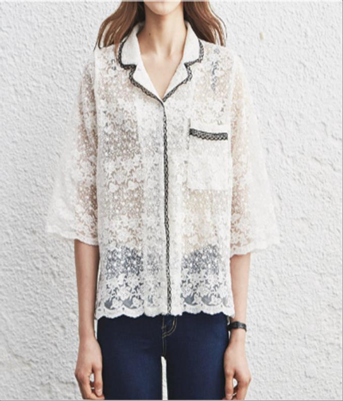 韩国官网款女装-上衣레이스카라BL