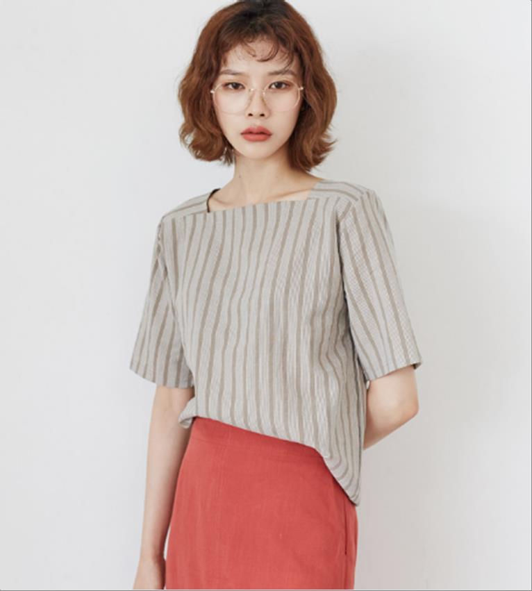 韩国官网款女装-上衣니트단가라
