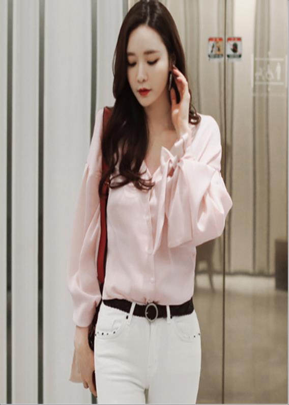 韩国官网款女装-上衣리본BL