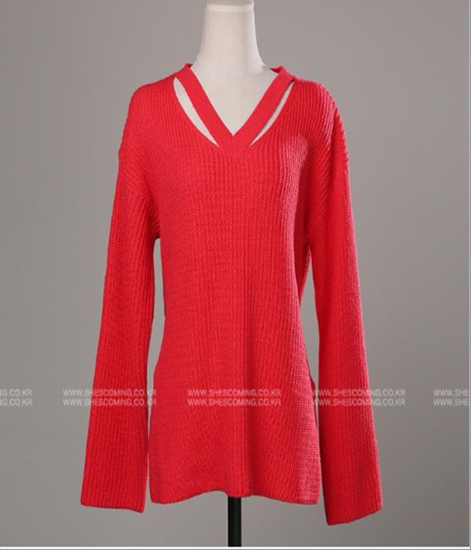 韩国官网款女装-上衣뒷V넥니트