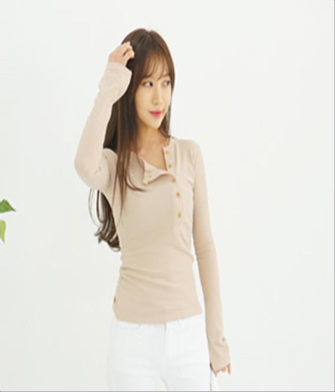 韩国官网款女装-上衣단추트임T