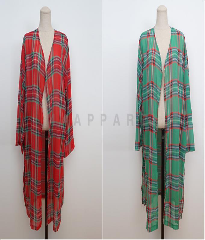 韩国官网款女装-上衣체크롱로브