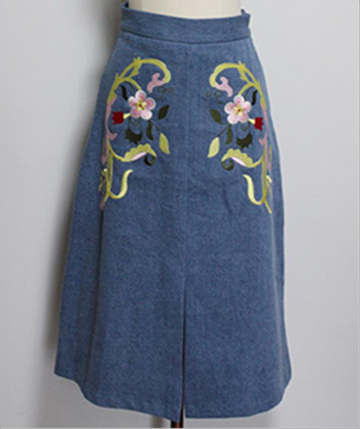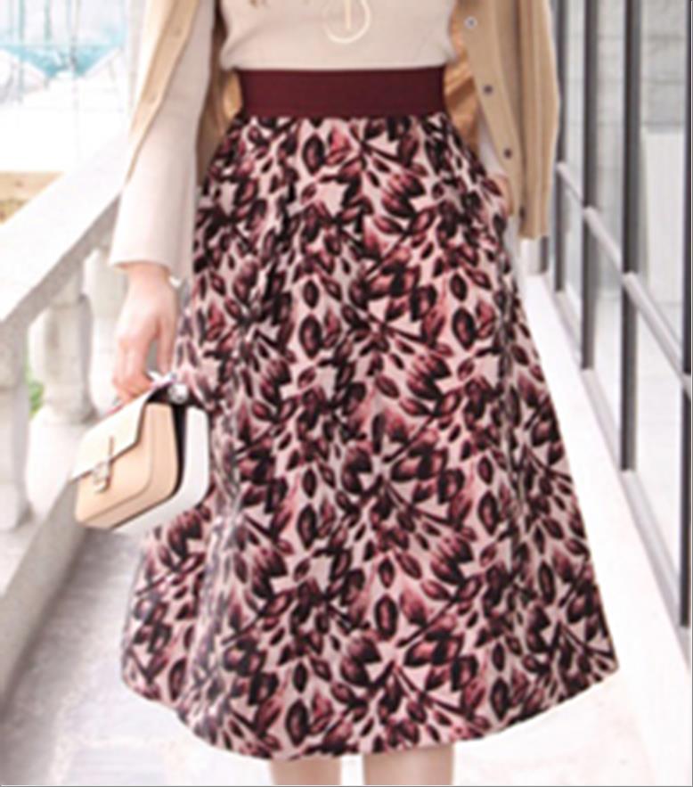 韩国官网款女装-裙子와인꽃스커트