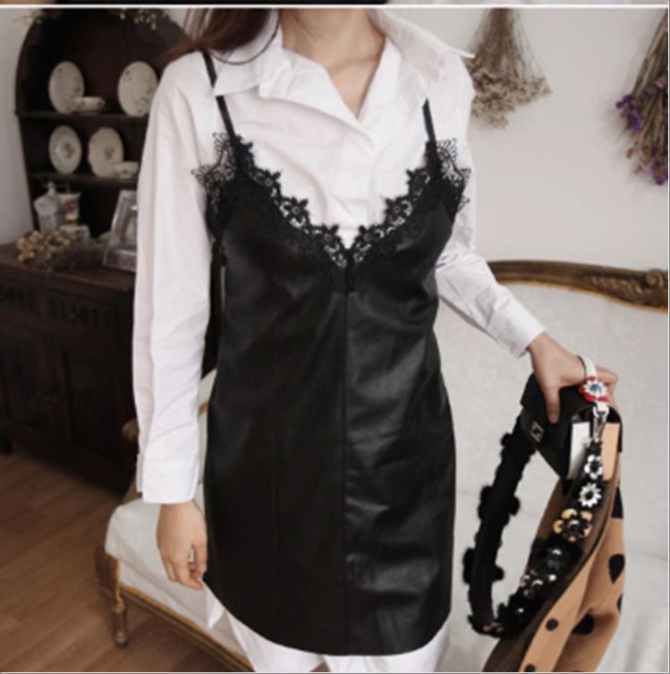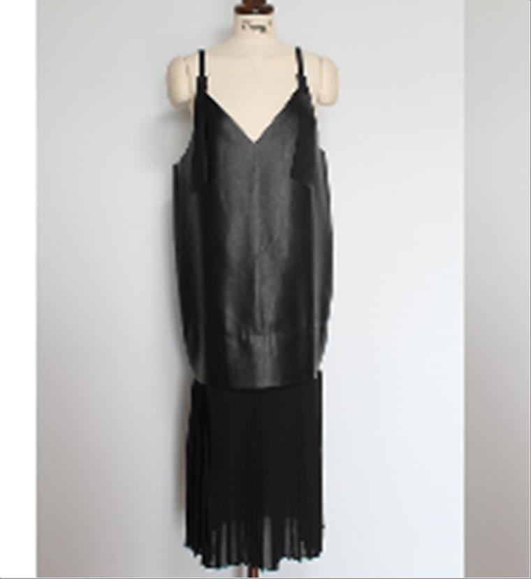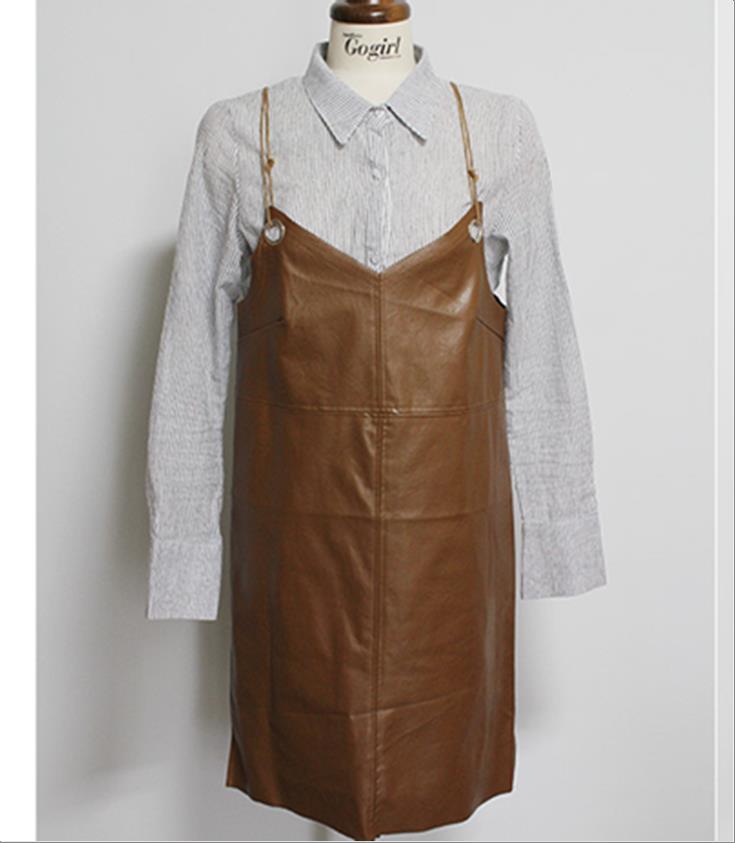 韩国官网款女装-上衣레더원피스+셔츠셋트