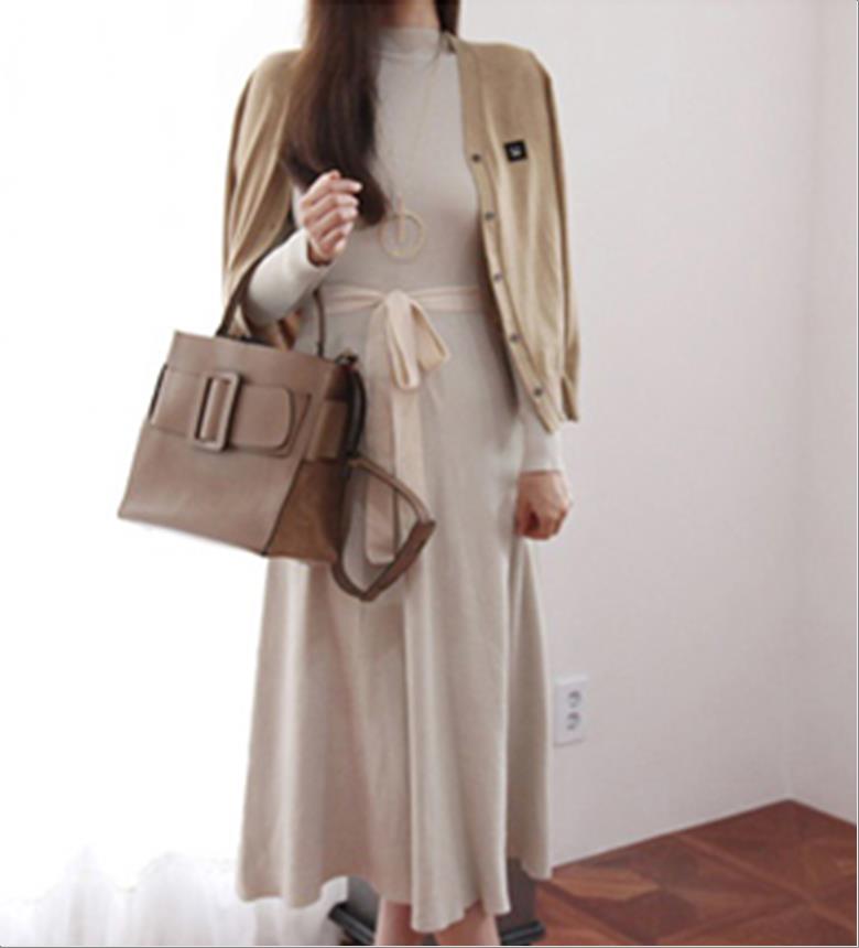 韩国官网款女装-裙子벨트니트롱원피스