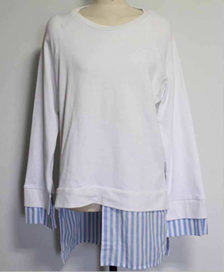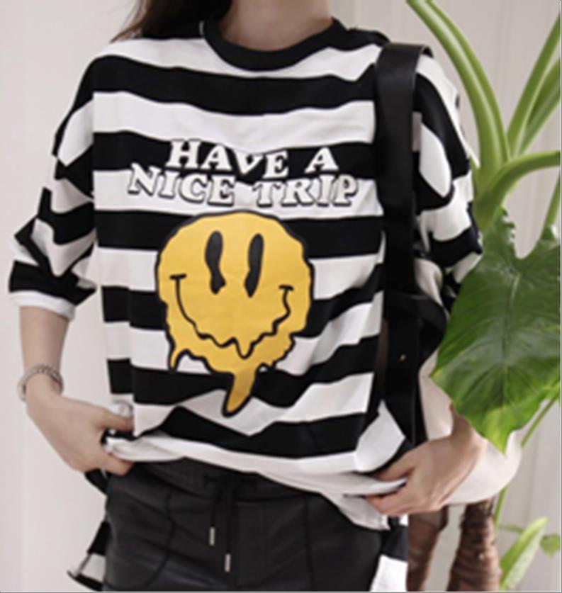 韩国官网款女装-上衣스마일줄지티