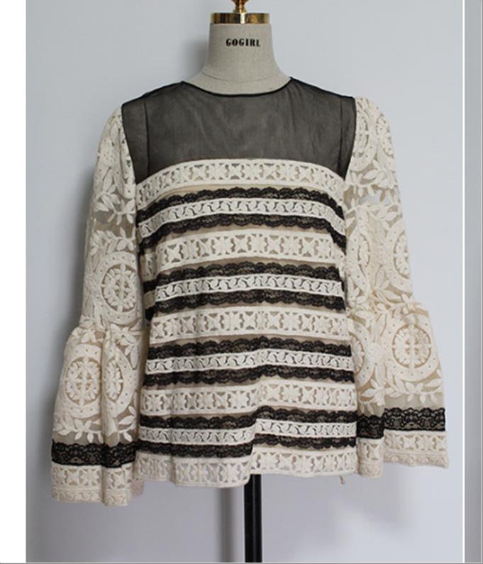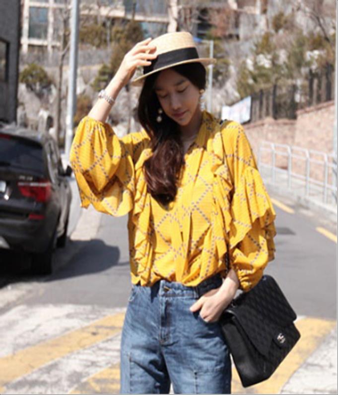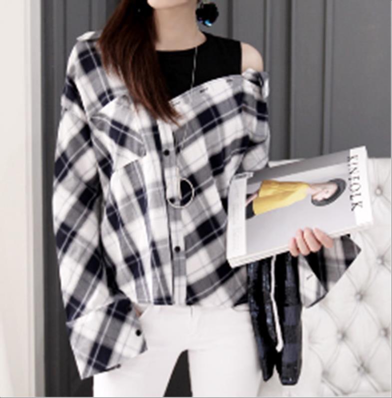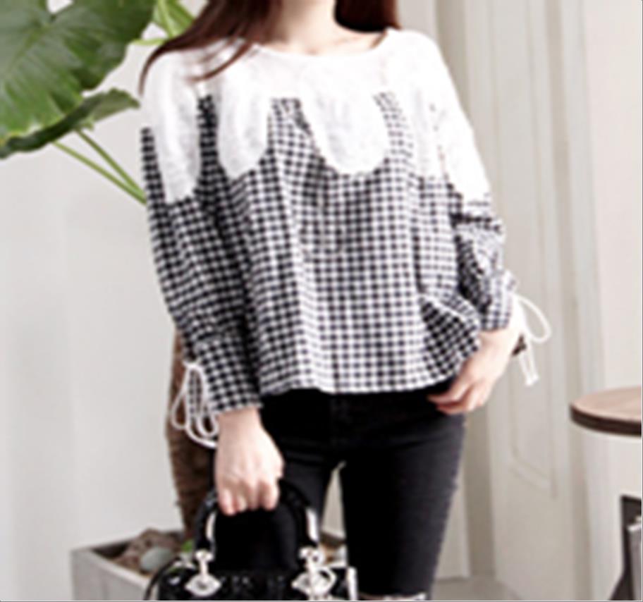 韩国官网款女装-上衣체크레이스블라우스