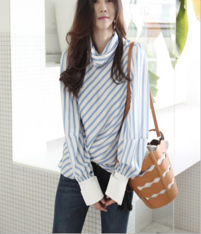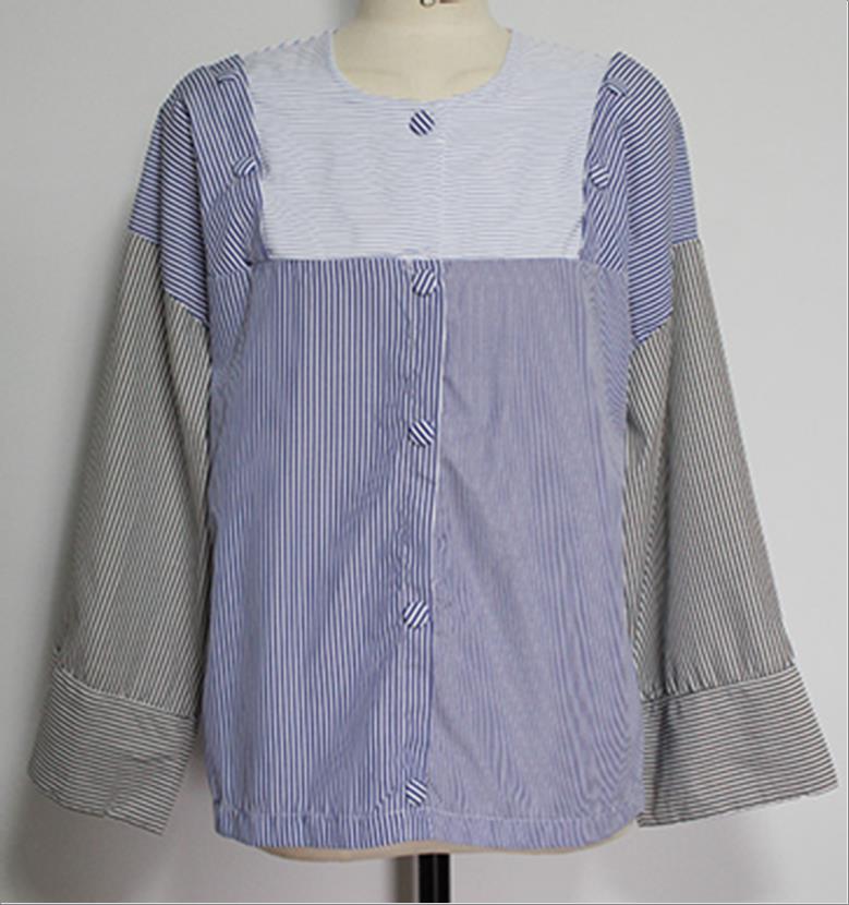 韩国官网款女装-上衣줄지밴딩블라우스
