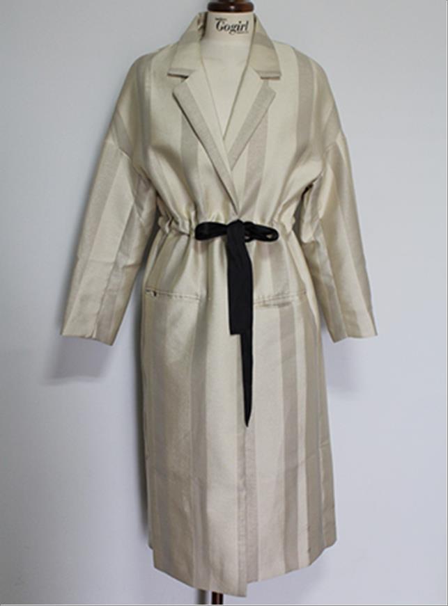 韩国官网款女装-外套리본 줄지 코트