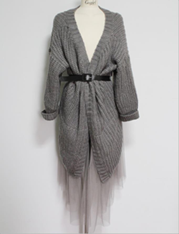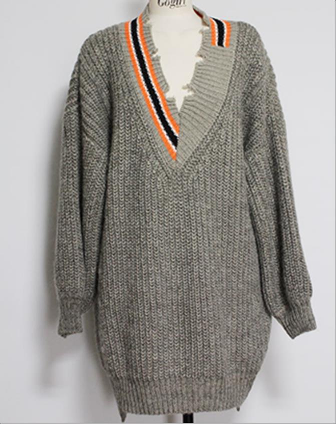 韩国官网款女装-上衣V찢어진 롱니트