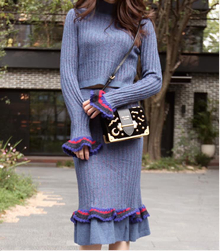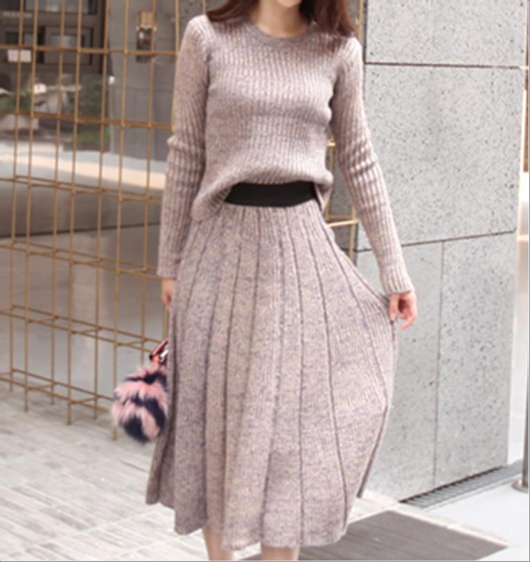 韩国官网款女装-裙子꽈베기 니트세트
