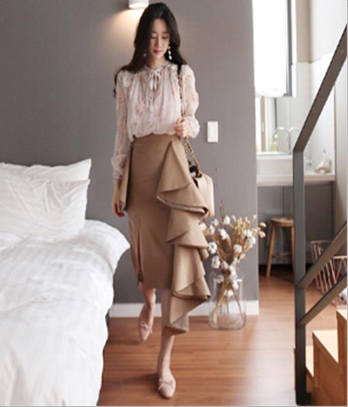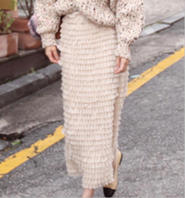 韩国官网款女装-裙子베이지프릴 SK