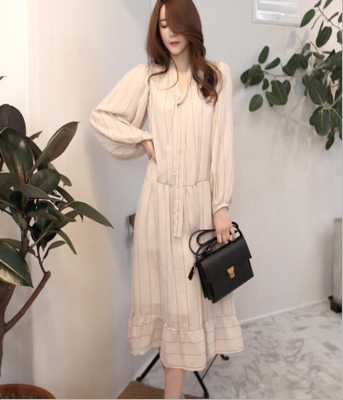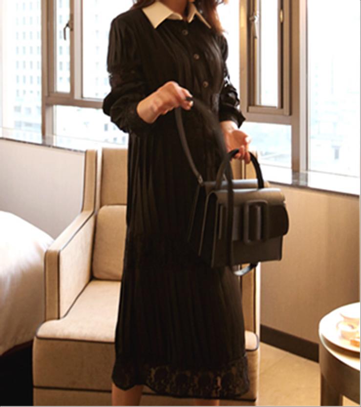 韩国官网款女装-裙子샤넬 카라 주름원피스