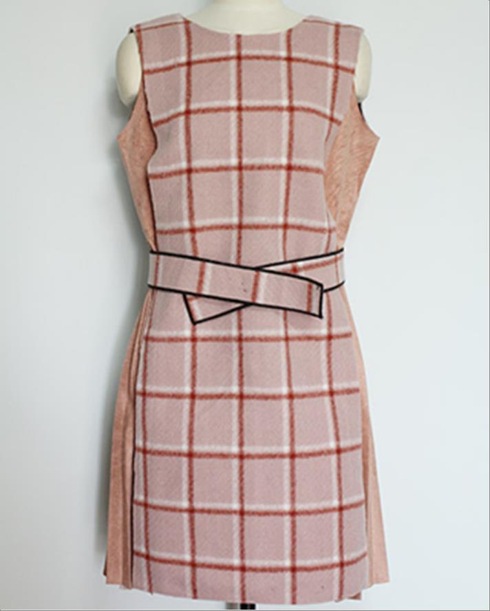 韩国官网款女装-裙子체크 나시 벨트 원피스