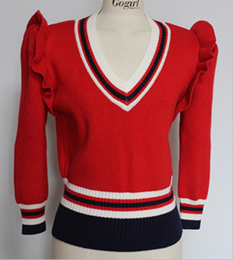 韩国官网款女装-上衣V프릴 니트