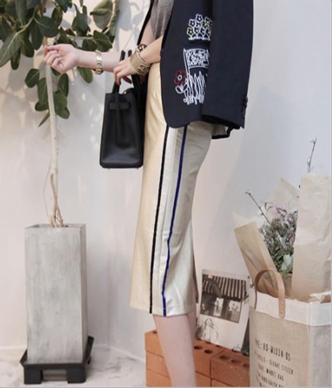 韩国官网款女装-裤子배색부츠켓