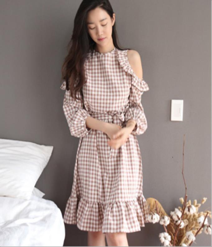韩国官网款女装-裙子체크어깨구멍OPS