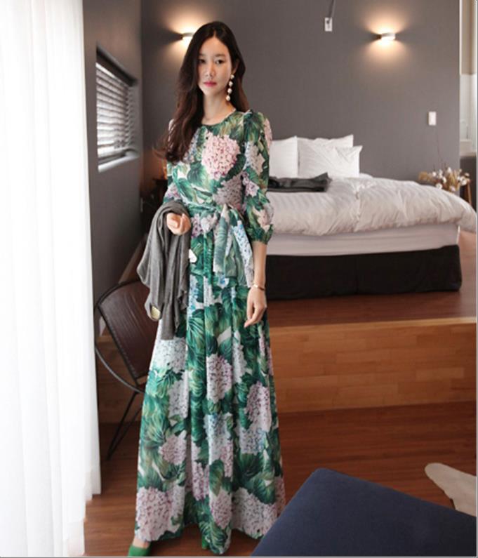 韩国官网款女装-裙子그린꽃롱OPS