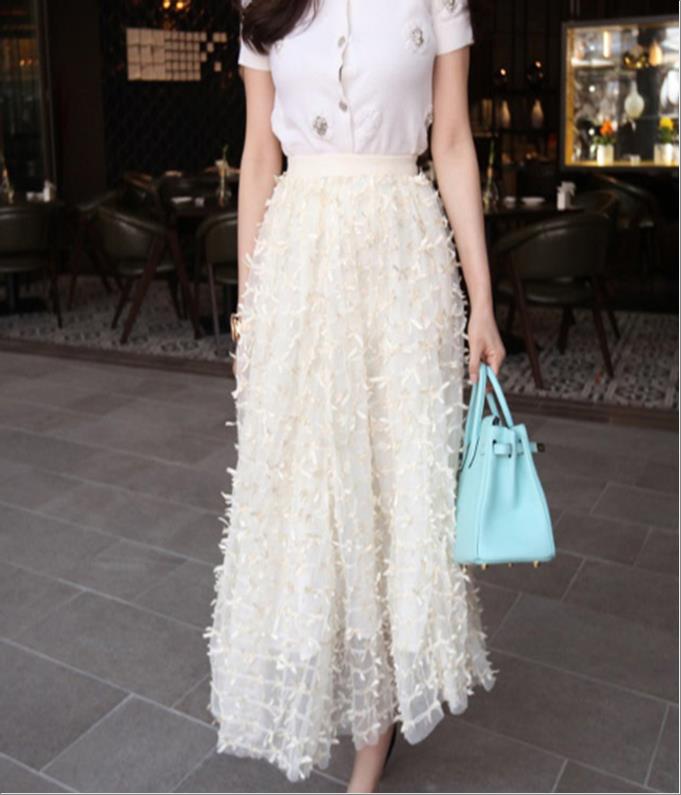 韩国官网款女装-裙子리본망사 SK