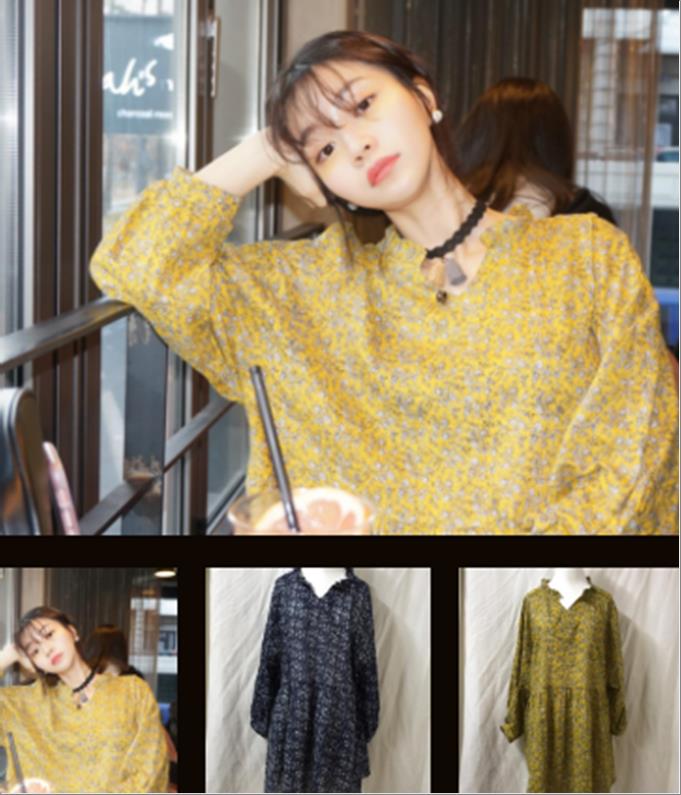韩国官网款女装-上衣잔꽃프릴OPS