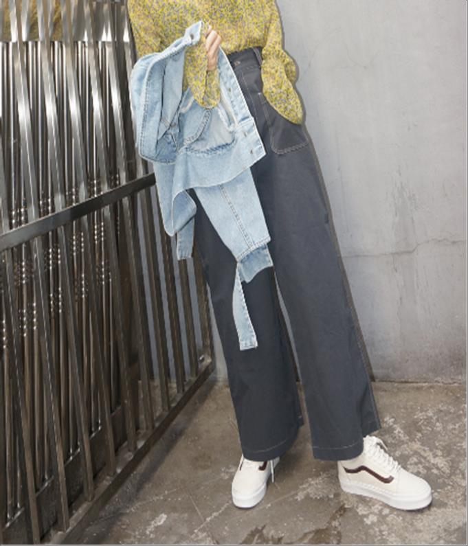 韩国官网款女装-裤子와이드스티치PT