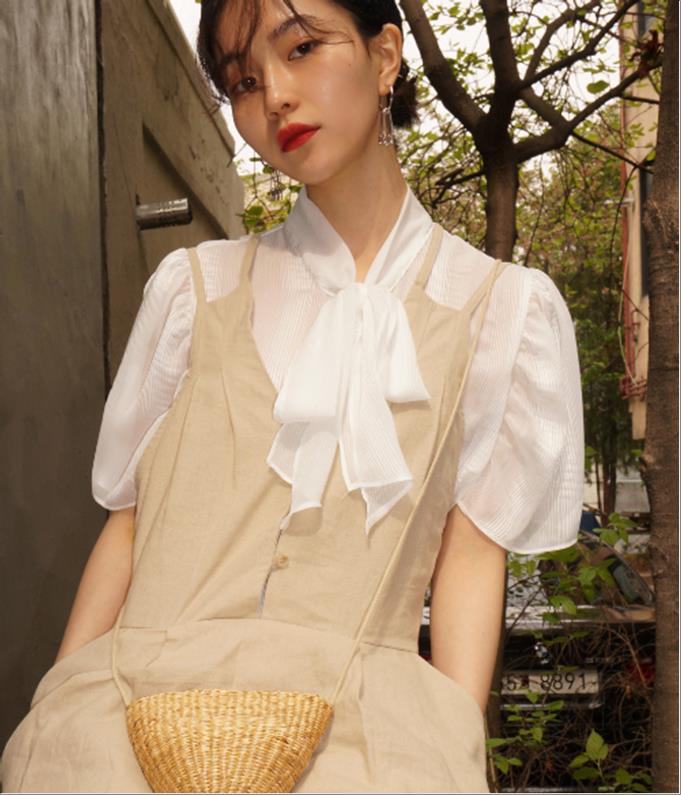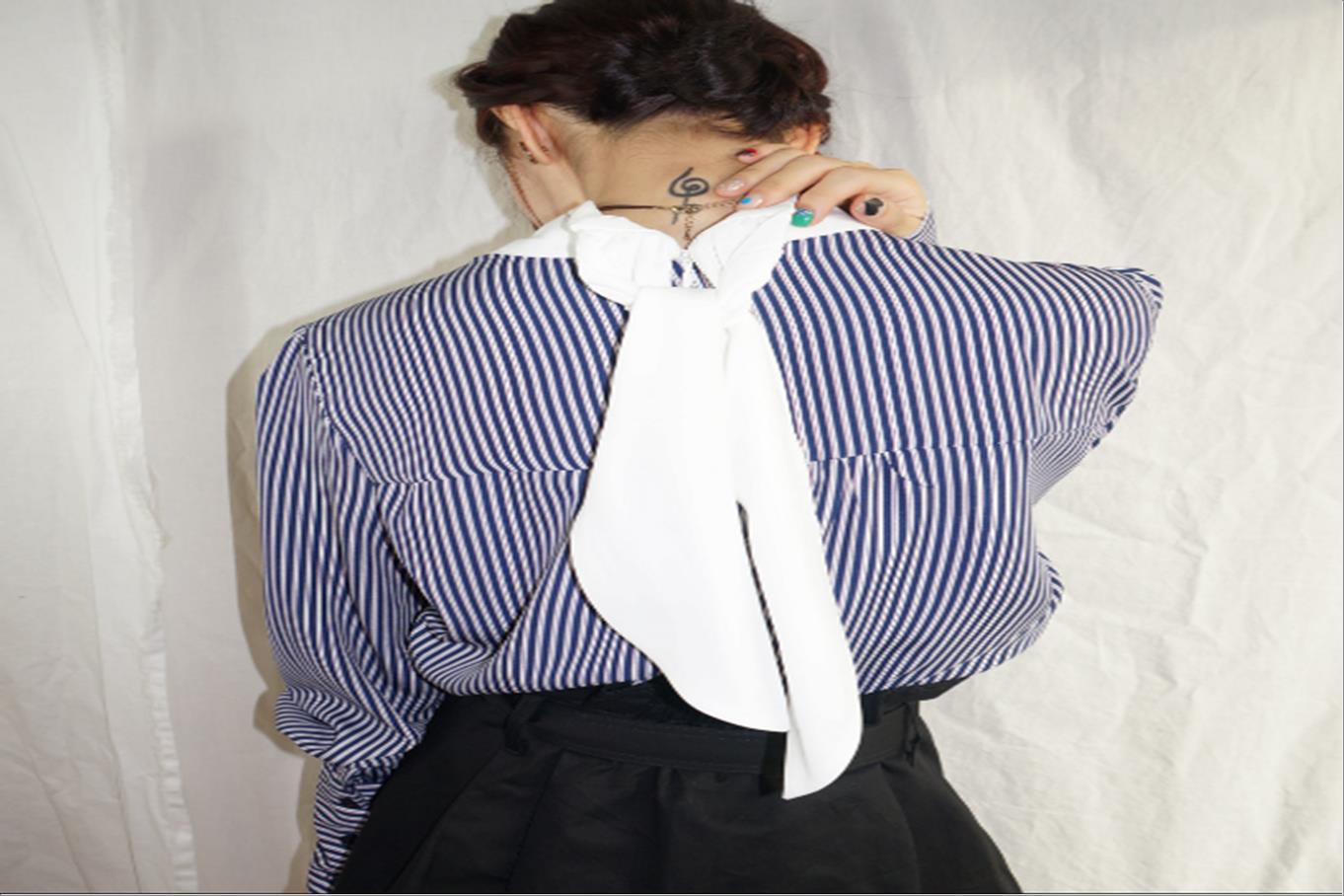 韩国官网款女装-上衣네크리본BL