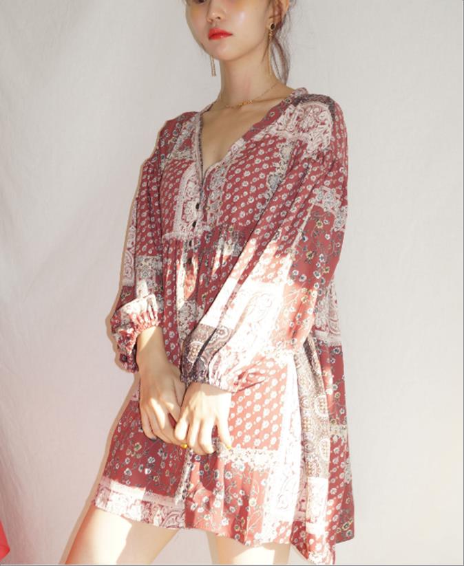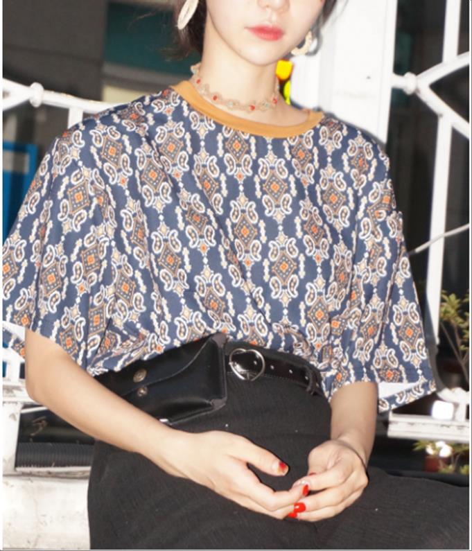 韩国官网款女装-上衣배색페이즐리BL
