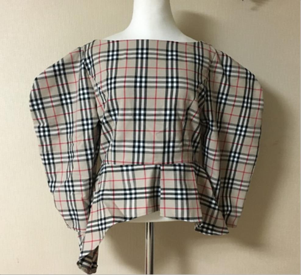 韩国官网款女装-上衣클래식체크퍼프BL