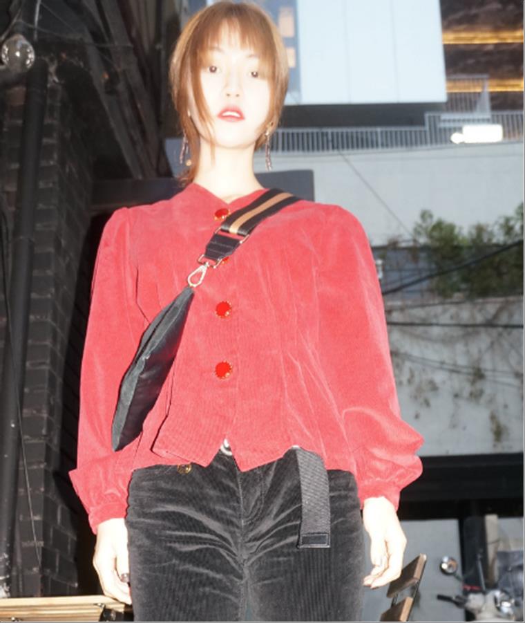 韩国官网款女装-上衣코듀로이다트BL