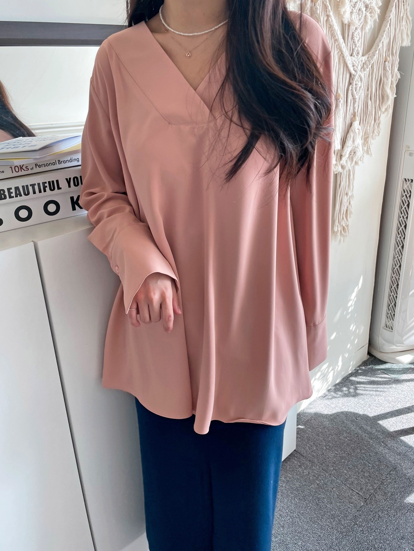 이지 헨리넥 셔츠 블라우스