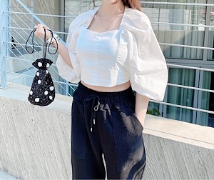 린넨도트퍼프블라우스
