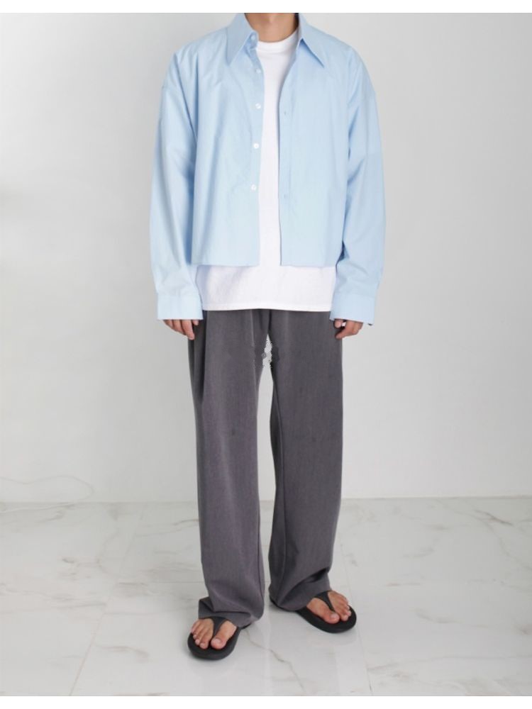 워싱 루즈핏 크롭 셔츠